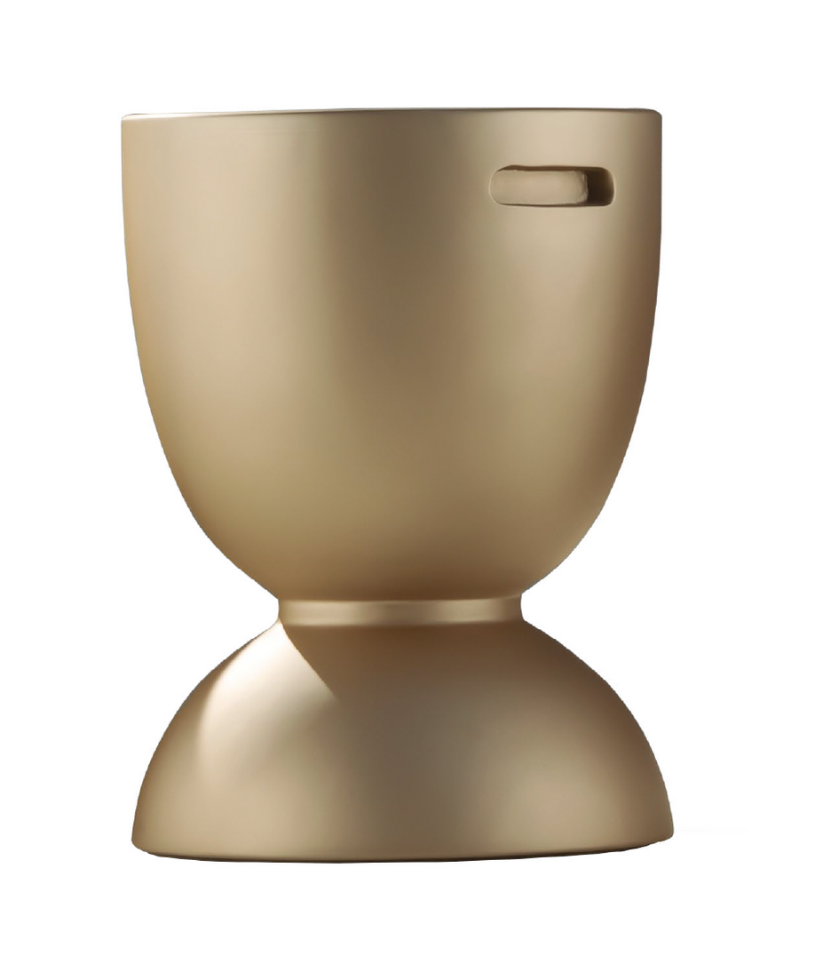 O ar, que forma o fluxo natural do vento é um dos quatro elementos da natureza e compõe nossos bancos da coleção 4 Elementos. Na foto você vê o banco Wind na pintura bronze light metalizado.